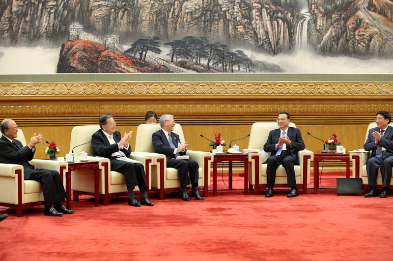 李克强首先对日本经济界代表团访华表示欢迎。总理说,在双方共同努力下,当前中日关系改善势头持续增强,这其中日本经济界发挥了“助推器”的作用。