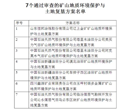 根据《土地复垦条例》《矿山地质环境保护规定》等有关规定,山东恒邦冶炼股份有限公司辽上金矿等7个矿山地质环境保护与土地复垦方案通过审查,现予公告。