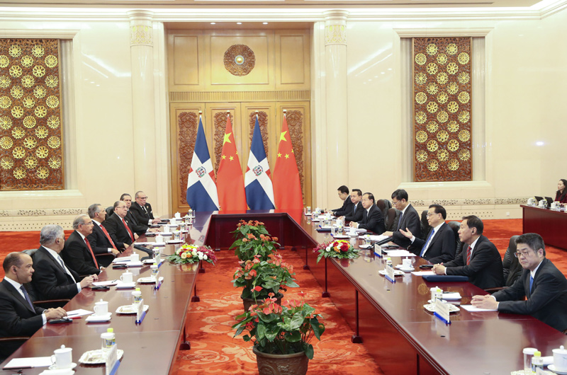 李克强表示,今年5月,中多正式建交,这符合两国人民的根本利益,开启了两国关系新篇章。习近平主席同总统先生举行会谈,全面规划两国关系发展蓝图。坚持一个中国原则是中多建交的政治基础,中方愿同多方相向而行,推动中多关系持续稳定向前发展。