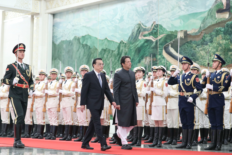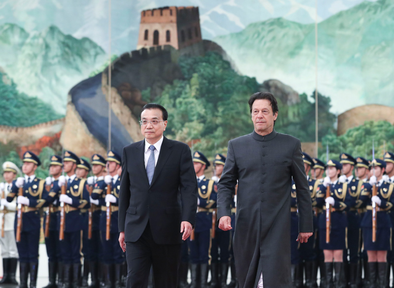 国务院总理李克强11月3日上午在人民大会堂北大厅举行仪式,欢迎巴基斯坦总理伊姆兰·汗对华进行正式访问。