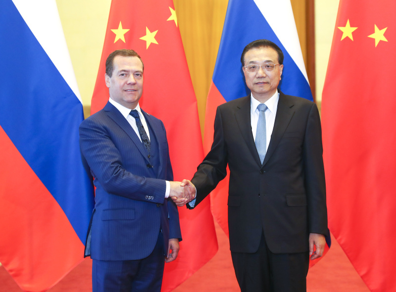 李克强举行仪式欢迎俄罗斯总理梅德韦杰夫访华