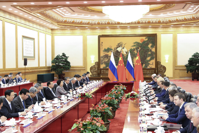 国务院总理李克强11月7日上午在人民大会堂北大厅举行仪式,欢迎俄罗斯总理梅德韦杰夫对华进行正式访问并共同主持中俄总理第二十三次定期会晤。