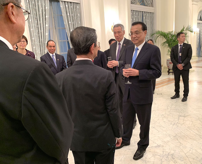 “在当前世界经济出现复杂形势、自由贸易受到冲击的背景下,RCEP对维护以世界贸易组织为核心的自由贸易体制和经济全球化具有重要意义。”李克强说,“中方愿与各国本着相互尊重、互谅互让原则,争取尽快结束RCEP谈判。”