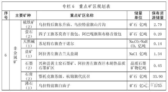 《内蒙古自治区矿产资源总体规划(2016-2020年)》