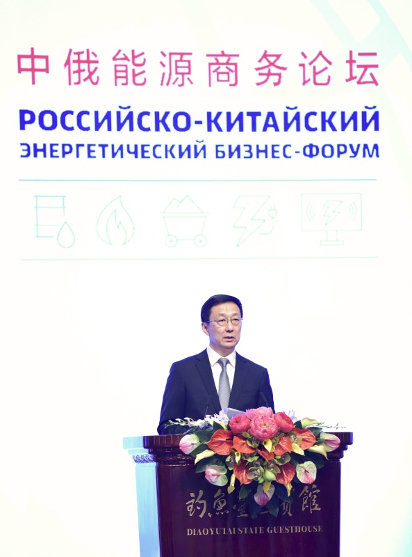中俄能源商务论坛在北京开幕 韩正宣读习近平主席贺信并致辞