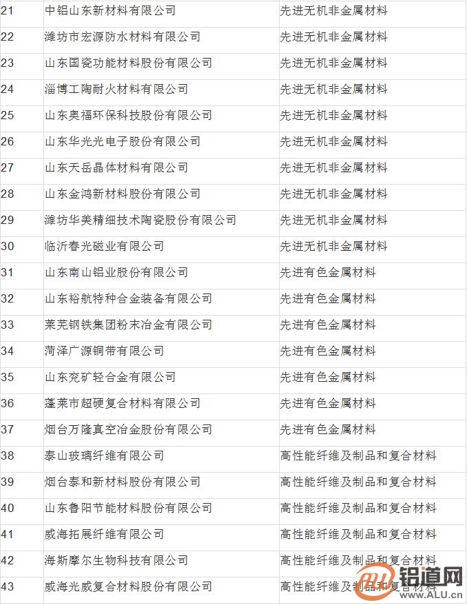 据山东省工业和信息化厅,为贯彻落实全省新旧动能转换重大工程战略部署,加快推动新材料领军企业培育工程建设,根据《山东省新材料产业发展专项规划(2018-2022年)》要求,经过企业申报、各市推荐、专家评审,山东省工业和信息化厅公布2018年山东省新材料领军企业50强名单。其中,先进有色金属材料行业中有三家铝业企业上榜。