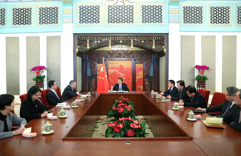 国务院总理李克强12月17日上午在中南海紫光阁会见来京述职的澳门特别行政区行政长官崔世安,听取澳门当前形势和特别行政区政府工作情况的汇报。