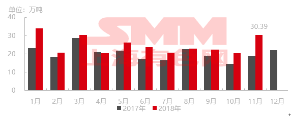 SMM分析来看,11月份录得较大幅度增加原因如下: