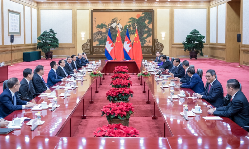 国务院总理李克强1月22日下午在人民大会堂同来华进行正式访问的柬埔寨首相洪森举行会谈。
