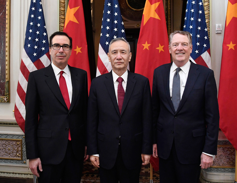 新华社华盛顿2月21日电(记者 韩洁 朱东阳)当地时间2月21日上午,习近平主席特使、中共中央政治局委员、国务院副总理、中美全面经济对话中方牵头人刘鹤与美国贸易代表莱特希泽、财政部长姆努钦,在美国白宫艾森豪威尔行政办公楼共同主持第七轮中美经贸高级别磋商开幕式。本轮高级别磋商定于21-22日在华盛顿举行,双方团队已于19日开始工作层磋商。