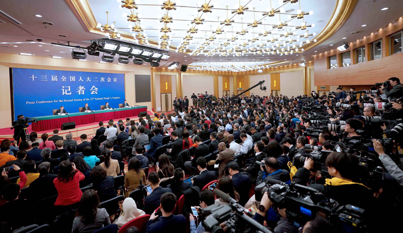3月8日,十三届全国人大二次会议在两会新闻中心举行记者会,邀请国务委员兼外交部长王毅就中国外交政策和对外关系回答中外记者提问。新华社记者 王毓国 摄