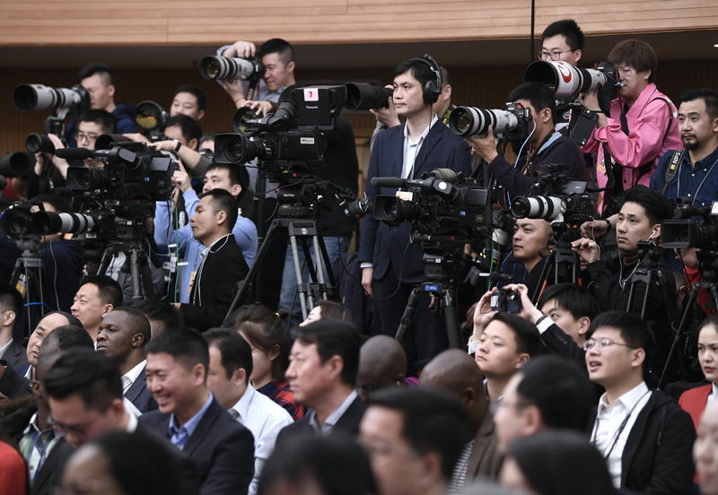 3月8日,十三届全国人大二次会议在两会新闻中心举行记者会,邀请国务委员兼外交部长王毅就中国外交政策和对外关系回答中外记者提问。新华社记者 沈伯韩 摄