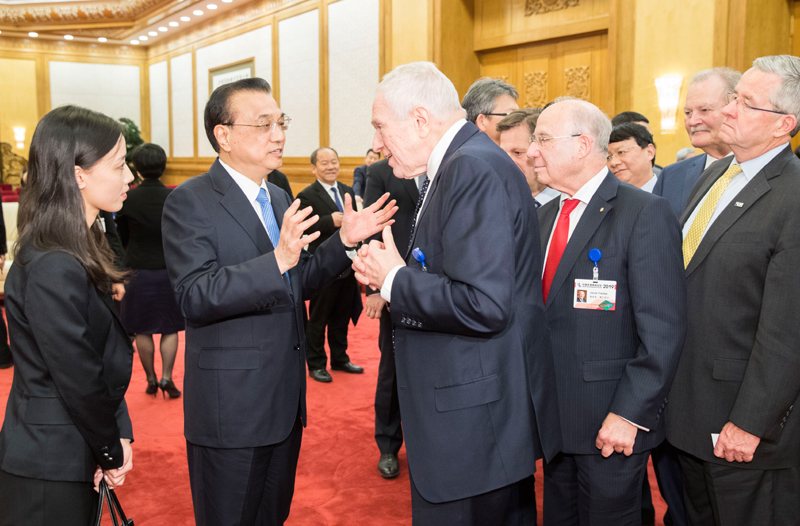 国务院总理李克强3月25日下午在北京会见出席中国发展高层论坛2019年年会的境外代表并同他们座谈。来自世界五百强企业的负责人、国际知名学术研究机构的专家学者、主要国际组织代表等百余人参加。