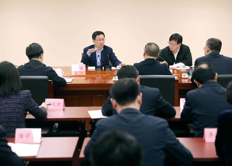 3月26日,中共中央政治局常委、国务院副总理韩正到国家医疗保障局调研并主持召开座谈会。新华社记者 刘卫兵 摄