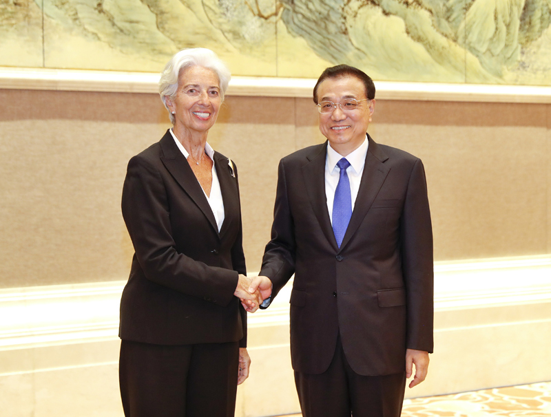 国务院总理李克强24日在钓鱼台国宾馆会见国际货币基金组织总裁拉加德。