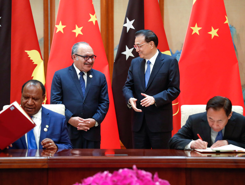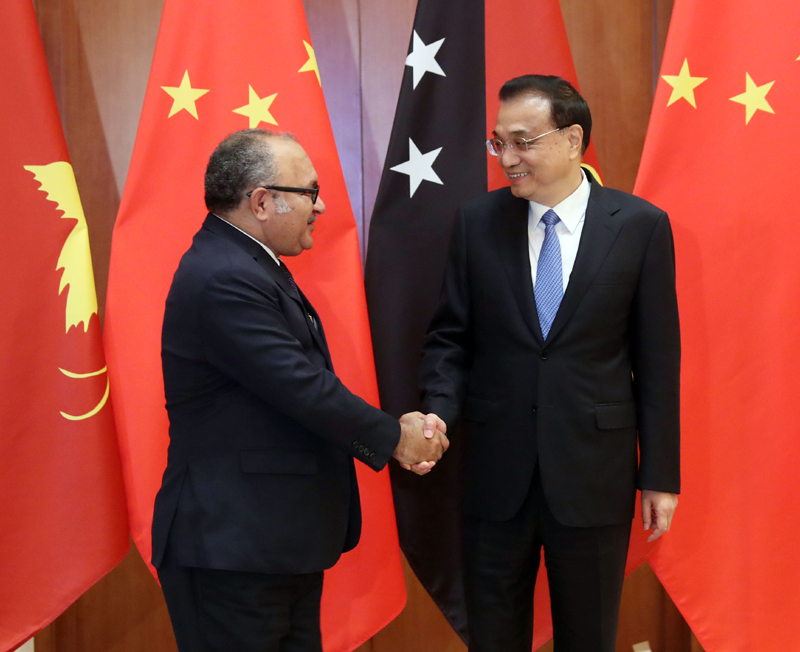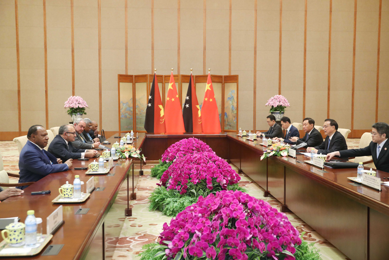 李克强表示,中国同巴新的关系与合作发展良好。习近平主席去年成功访问巴新,推动两国关系迈上新台阶。中方愿将“一带一路”倡议同巴新发展战略对接,拓展各领域务实合作,加快推进双边自贸协定联合可行性研究,更好实现互利共赢。希望巴新在太平洋岛国中发挥建设性引领作用,促进中国同岛国整体关系不断深入发展。