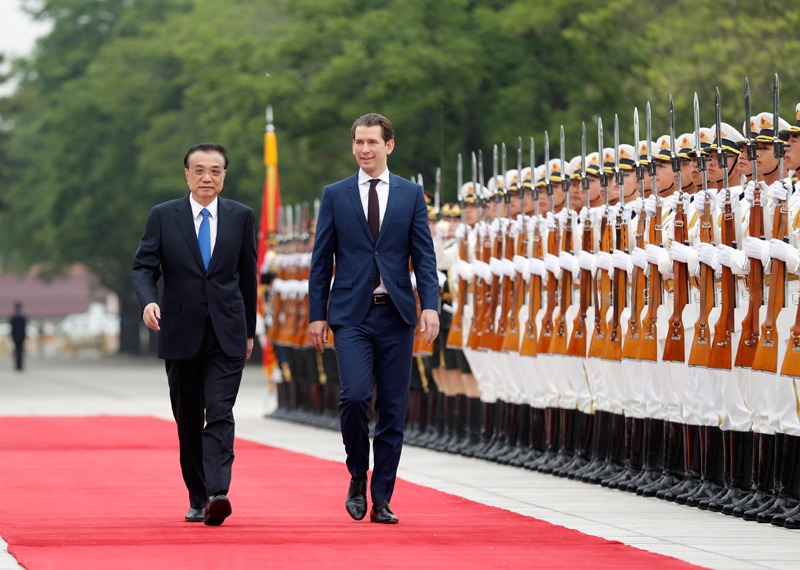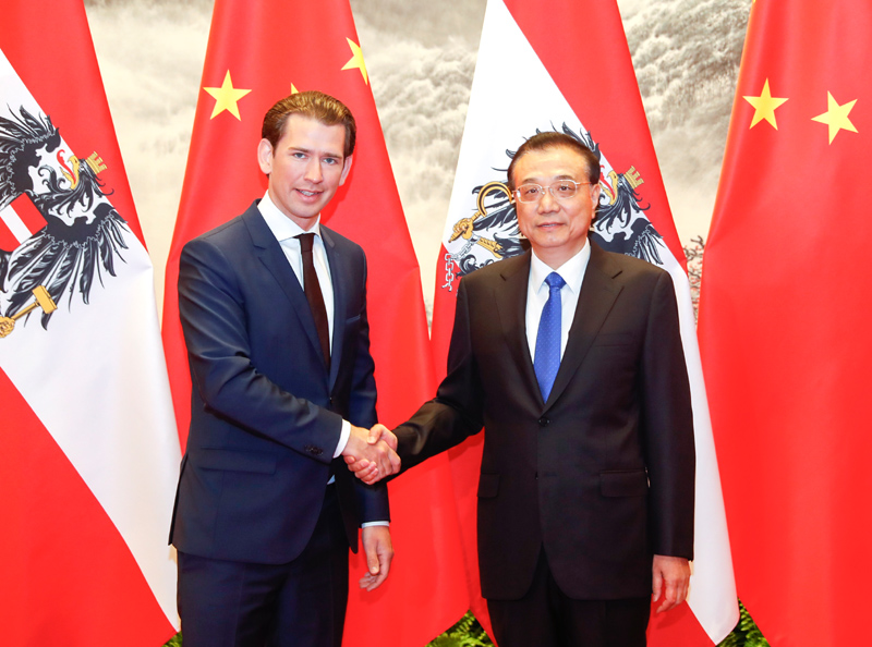 李克强指出,中奥在先进制造、农业、旅游等领域的合作潜力巨大。中国拥有巨大市场,将继续扩大开放,致力于打造市场化、法治化、国际化的营商环境。中方愿同奥方发挥各自优势,挖掘潜力,推动双方务实合作取得新成果。我们愿根据市场需要增加两国间航班班次,愿同奥方加强大熊猫科研合作以及冰雪运动交流。希望奥地利作为欧盟成员,继续为中欧关系健康稳定发展发挥积极作用。