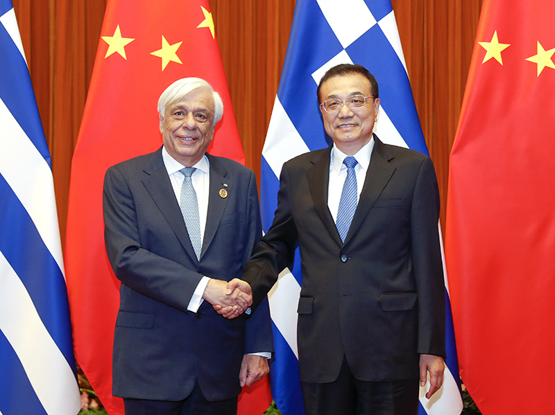 国务院总理李克强15日在人民大会堂会见希腊总统帕夫洛普洛斯。