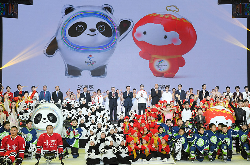 17日晚,国家冬季运动训练中心冰球馆内,洋溢着一派欢乐喜庆气氛。19时25分许,韩正和国际奥委会主席托马斯·巴赫,国家体育总局局长、北京冬奥组委执行主席苟仲文以及运动员和冰雪少年代表,一同开启装置,北京冬奥会吉祥物“冰墩墩”精彩亮相。