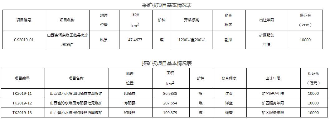 通知公告根据《中华人民共和国矿产资源法》、《矿业权交易规则》、《探矿权采矿权招标拍卖挂牌管理办法(试行)》、《山西省煤炭资源矿业权出让转让管理办法》等法律法规规定,受山西省自然资源厅委托,山西省自然资源交易和建设用地事务中心对山西省河东煤田临县庞庞塔煤矿等四宗煤炭矿业权组织实施公开招标出让工作。现将有关事宜公告如下: