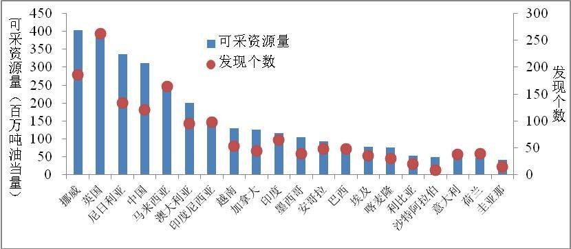 其中,深水油气发现11个,储量为5.7亿吨油当量;陆架7个,储量4.4亿吨油当量;陆上仅3个,储量约1亿吨油当量。