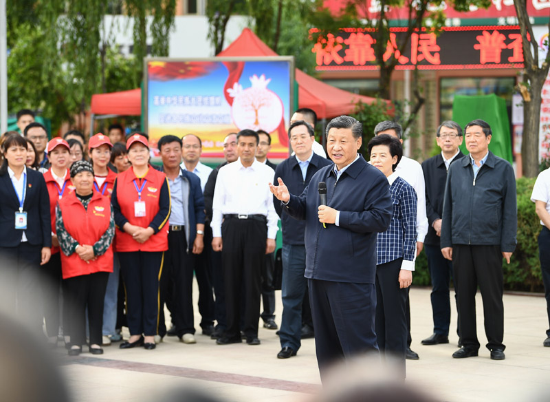 6月8日至10日,中共中央总书记、国家主席、中央军委主席习近平在宁夏考察。这是6月8日下午,习近平在吴忠市利通区金花园社区考察民族团结社区创建工作情况。新华社记者 谢环驰 摄