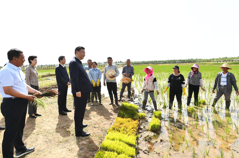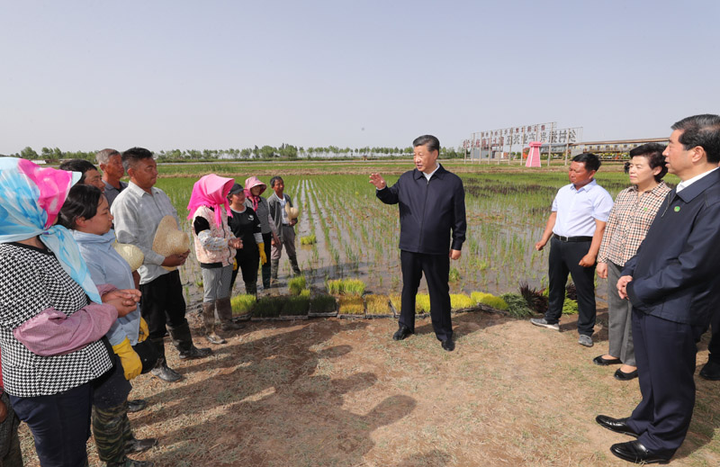 6月8日至10日,中共中央总书记、国家主席、中央军委主席习近平在宁夏考察。这是6月9日下午,习近平在银川市贺兰县稻渔空间乡村生态观光园,了解宁夏现代农业发展和特色农产品情况。新华社记者 鞠鹏 摄