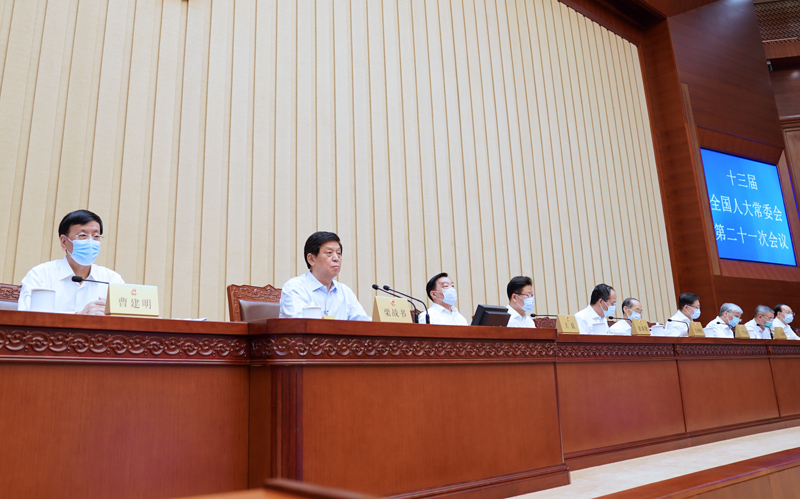 8月8日,十三届全国人大常委会第二十一次会议在北京人民大会堂举行第一次全体会议,栗战书委员长主持。新华社记者 张领 摄