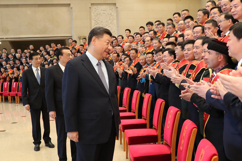 上午10时,习近平等来到京西宾馆会议楼前厅,全场响起热烈掌声。习近平等走到代表们中间,同大家亲切交流并合影留念。