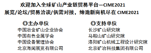 中国(北京)国际矿业展览会(简称CIME)是最为专业的矿山行业展览会,是全球具有广泛影响力和高度认可的展览会,被誉为中国矿业第一展。为了助力新时期矿山行业健康持续发展,加快推动新产品、新技术、新装备广泛应用,CIME2021将于5月27日在北京中国国际展览中心(新馆)举办。