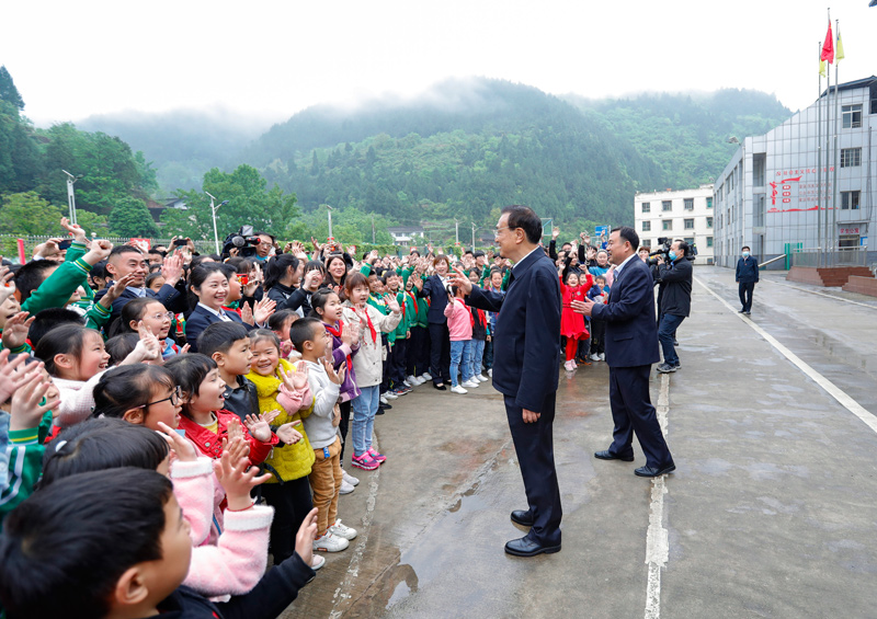 李克强十分关心基层群众的基本民生保障。他来到沙河镇卫生院,询问服务多少群众、看病报销比例等情况。他考察药品配备,叮嘱医护人员守好人民健康第一线。在沙河镇学校,他嘱咐当地负责人确保义务教育教师工资水平不低于当地公务员。他勉励学生们学好知识,这样大山就挡不住视野,将来干出一番事业,回报家乡和社会。李克强强调,我国还是发展中国家,政府要着力保基本民生,一个是保基本教育主要是义务教育,第二个是保基本医疗,还要保基本住房,要加大对这些基本民生投入尤其向县乡倾斜,尽力而为、量力而行,在发展中逐步提高保障水平。
