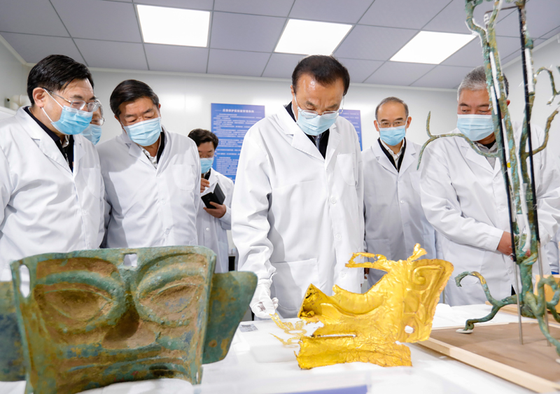 李克强来到三星堆遗址发掘现场,了解考古进展。对考古人员的专业精神表示赞许。他说,你们是在追溯中华文化的根脉。考古涉及多个领域,要运用好现代技术,加强国际合作,期待有更多新发现,更好传承中华优秀文化。