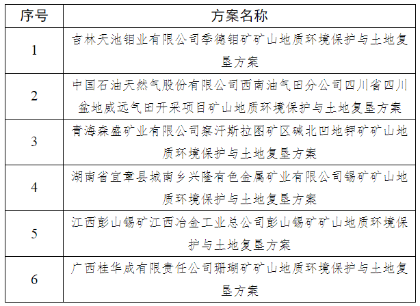 6个拟通过审查的矿山地质环境保护与土地复垦方案名单
