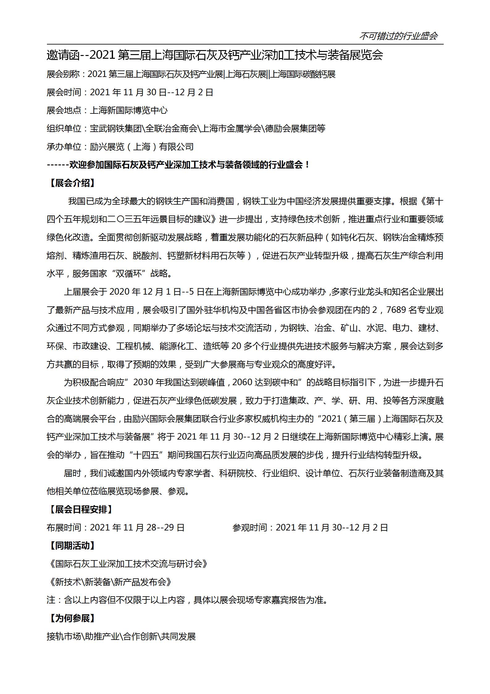 2021第三届上海国际石灰及钙产业深加工技术与装备展览会