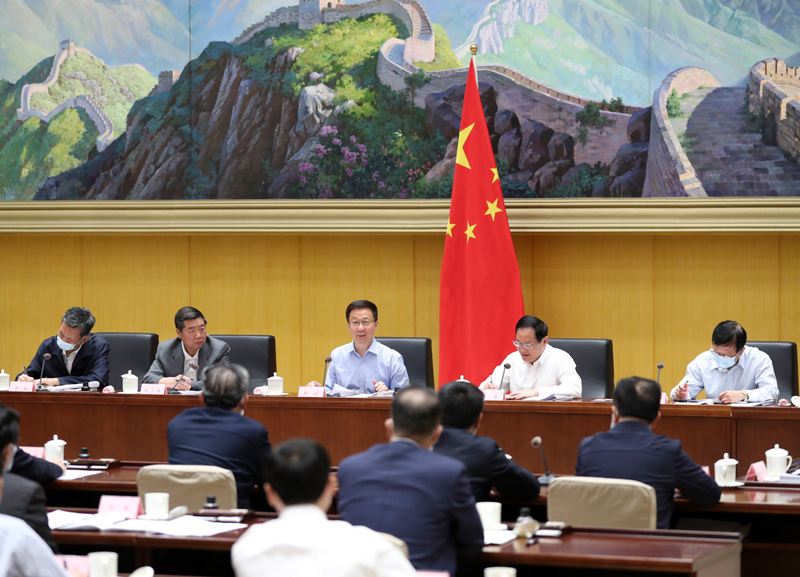 6月1日,推动长三角一体化发展领导小组全体会议在北京召开。中共中央政治局常委、国务院副总理、推动长三角一体化发展领导小组组长韩正主持会议并讲话。新华社记者 丁海涛 摄