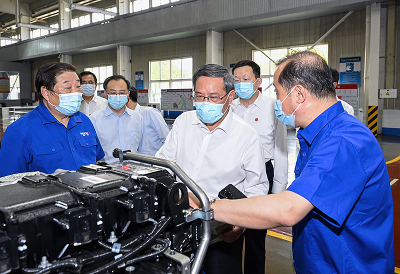 5月17日至18日,中共中央政治局常委、国务院总理李强在山东调研。这是5月17日,李强在潍坊潍柴集团考察。新华社记者 饶爱民 摄
