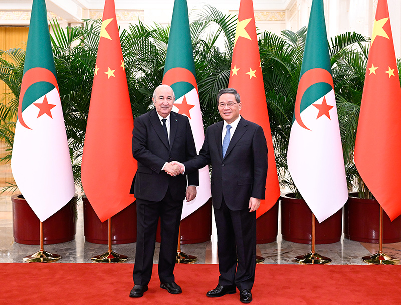 李强指出,中方将继续坚定支持阿方维护国家主权、独立和领土完整,走符合自身国情的发展道路,反对外部势力干涉阿内政。双方要把基础设施建设等传统领域合作做得更实,更好实现合作共赢;把信息技术、数字经济、新能源汽车、航天卫星等新兴领域合作做得更大,打造发展中国家高技术合作典范;把卫生、教育、旅游等人文交流合作引向深入,更好造福两国人民。中方支持阿尔及利亚在国际和地区事务中发挥更大作用,愿同阿方携手践行真正的多边主义,反对单边主义和霸权霸凌,捍卫中阿及广大发展中国家共同利益。
