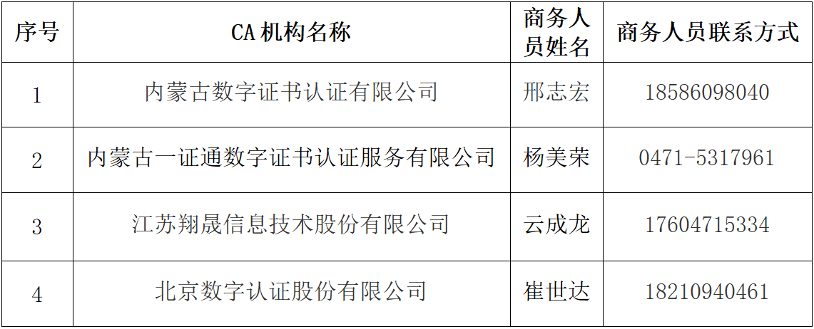附件:中心驻场CA公司联系方式