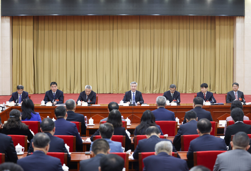 3月6日,中共中央政治局常委、全国政协主席王沪宁参加全国政协十四届二次会议少数民族界委员联组会。新华社记者 申宏 摄
