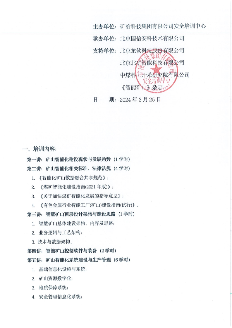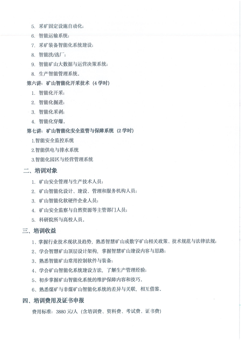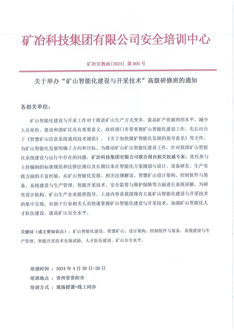 关于举办“矿山智能化建设与开采技术”高级研修班的通知