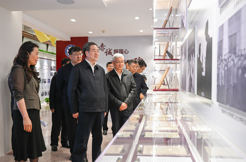 5月26日,中共中央政治局常委、国务院副总理丁薛祥在北京出席2024年全国科技活动周暨北京科技周主场活动。这是丁薛祥在中国科学院力学研究所科学家精神展厅参观。新华社记者 张领 摄