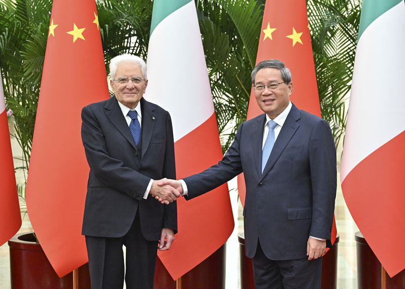 李强表示,当前,中意关系保持健康稳定发展,各领域交流合作日益深化,不断取得新的务实成果。昨天,习近平主席同总统先生举行会晤,就事关两国关系长远发展的重大问题进行了深入探讨。中方愿同意方一道,以两国建立全面战略伙伴关系20周年为契机,持续弘扬传统友谊,加强全方位互利合作,推动双边关系不断迈向更高水平。