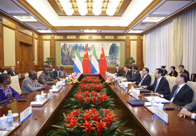 李克强表示,中塞传统友谊深入人心,两国始终相互帮助,相互支持,特别是在并肩抗击埃博拉疫情的过程中结下深厚友谊。中塞同属发展中国家,中方乐见塞经济发展、民生改善,愿为塞经济社会发展提供力所能及的支持,实现共同发展,互利共赢。中方愿继续加强贸易和投资合作,打造教育、卫生等领域合作新亮点。希望塞方提供更多优惠政策,吸引中国企业赴塞投资。