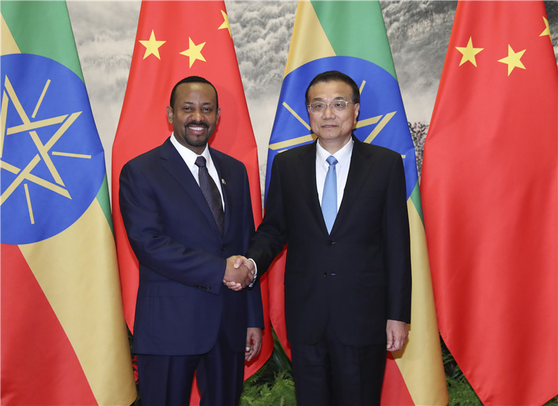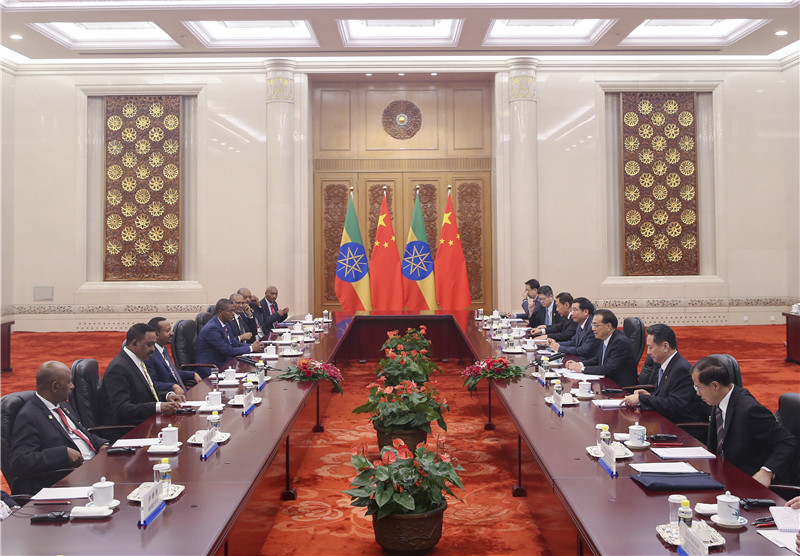 国务院总理李克强9月3日上午在人民大会堂中央大厅举行仪式,欢迎埃塞俄比亚总理阿比对中国进行正式访问。