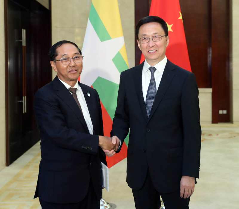 在会见敏瑞时,韩正表示,中缅是山水相连的友好邻邦。习近平主席多次同缅甸领导人会晤并达成重要共识,为新时期中缅关系发展指明了方向。双方要落实好领导人共识,保持高层交往势头,推进发展战略对接,加快实施重大及民生领域合作项目,共同推动中缅全面战略合作取得更大发展。中方支持缅推进和平进程,愿继续为此发挥建设性作用。