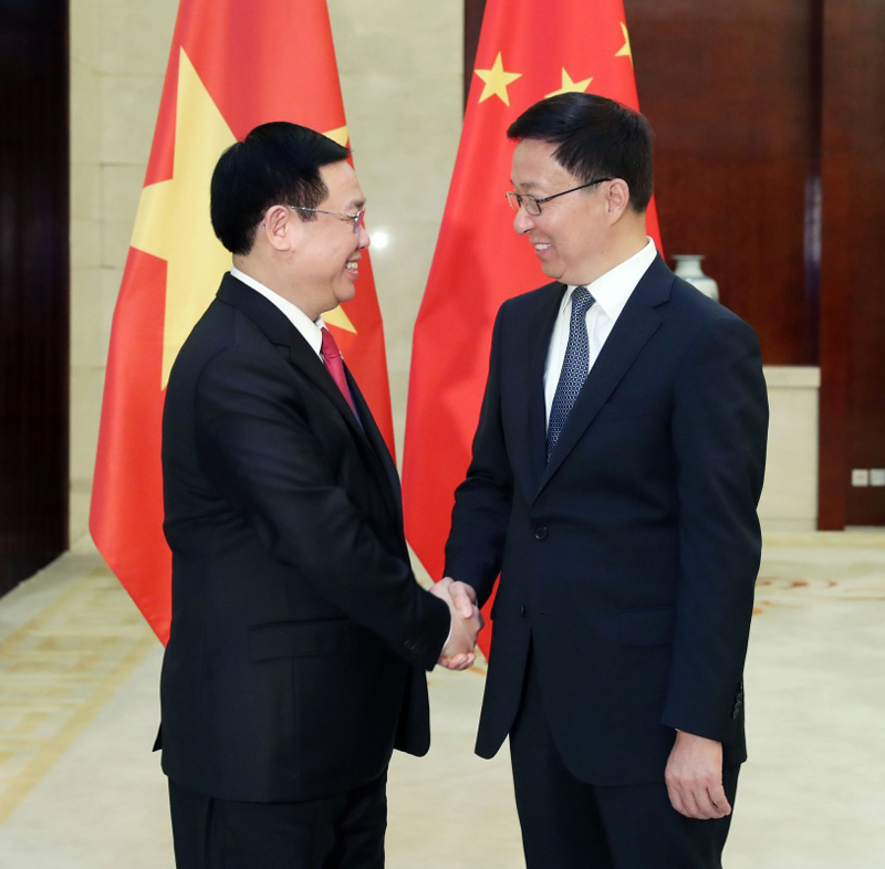 在会见王庭惠时,韩正表示,中越是具有战略意义的命运共同体,双方巩固睦邻友好、深化互利合作,符合两党两国共同战略利益,也是中越人民的共同期待。习近平主席同越方领导人实现历史性互访,引领了新时期中越关系前进方向。双方要以落实高层共识为契机,保持战略沟通,提升务实合作规模和水平,妥善管控分歧,推动双边关系不断取得新的更大发展。