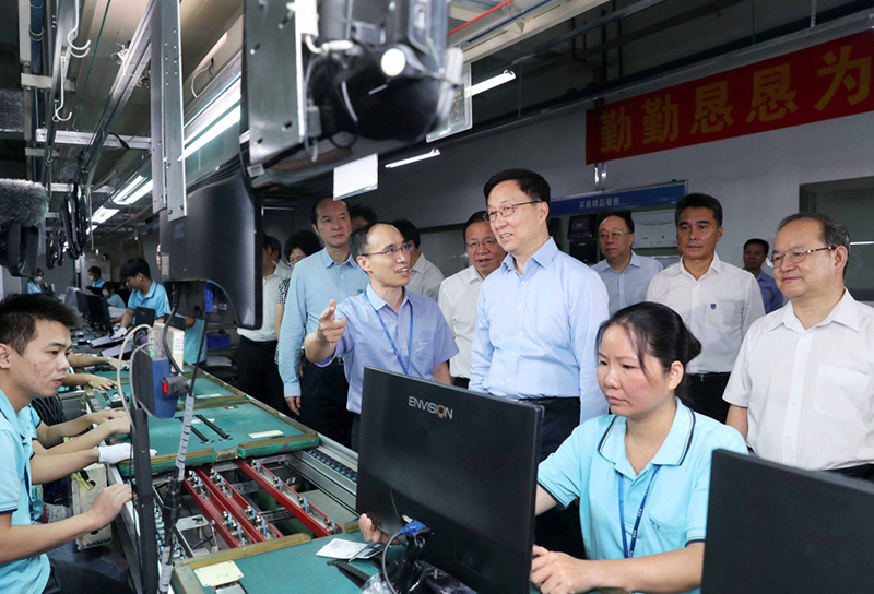 9月12日至13日,中共中央政治局常委、国务院副总理韩正在广西南宁、钦州、北海调研经济社会发展情况。这是9月13日,韩正考察冠捷显示科技(北海)有限公司。新华社记者 刘卫兵 摄
