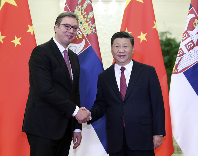 9月18日,国家主席习近平在北京人民大会堂会见来华出席夏季达沃斯论坛的塞尔维亚总统武契奇。新华社记者 丁林 摄